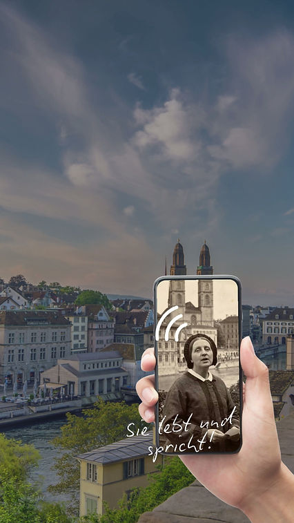 Eine Besucherin steht an einem historischen Ort in Ihrer Stadt. Sie sieht einen kleinen QR-Code, scannt ihn – und plötzlich erscheint eine Persönlichkeit auf ihrem Bildschirm, die genau hier Geschichte geschrieben hat. Nicht als Text. Nicht als Video! Als lebendige Persönlichkeit, die direkt zu ihr spricht.